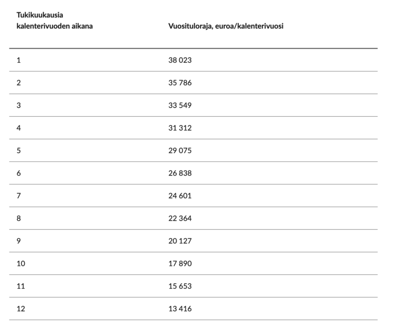 Vuosina 2025 ja 2026 opintotukeen oikeutettuja ovat opiskelijat, joiden verotettavat vuositulot eivät ylitä 38 023 euron summaa. Mitä vähemmän vuosituloja on, sitä useampaan vuosittaiseen opintotukikuukauteen opiskelija on oikeutettu.