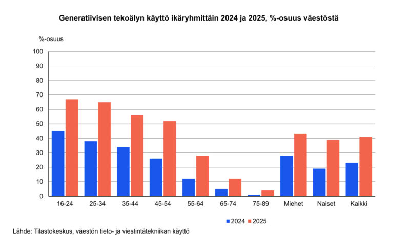 Tilastokeskuksen marraskuussa 2025 tekemän selvityksen mukaan tekoälyä käyttää 16–24-vuotiaista nuorista lähes 70 prosenttia. Suurin osa toisen asteen ja korkeakoulujen media-alan opiskelijoista kuuluvat tähän ikähaarukkaan. Selvityksen mukaan nuorten tekoälyn käyttö on vuodessa kasvanut yli 20 prosenttia.